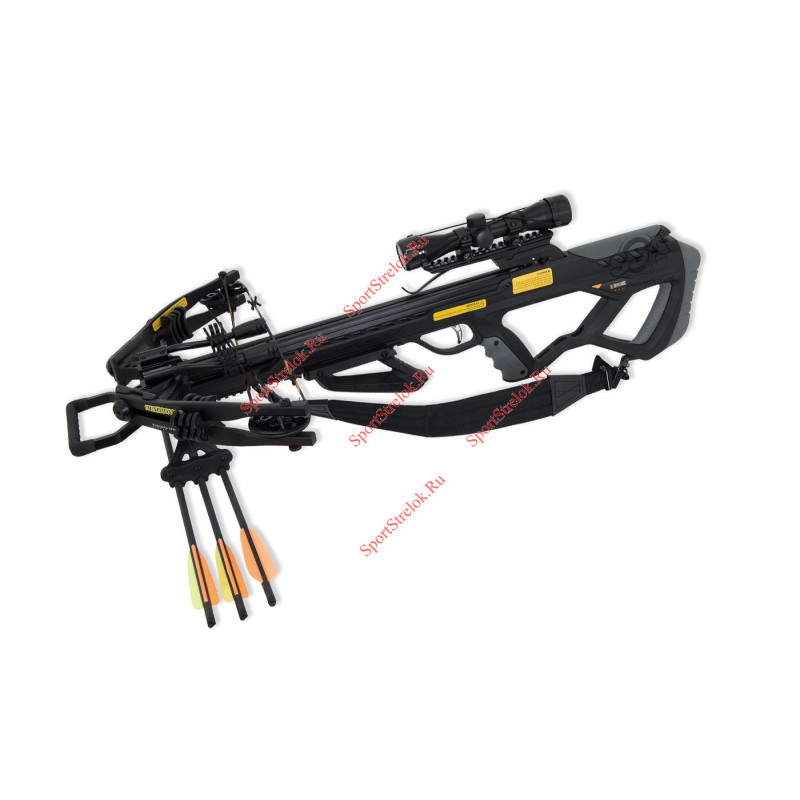 В комплекте: Подствольный кивер, 3 стрелы карбоновые, Оптический прицел, Ремень для переноски, Воск, Натяжитель, Стопперы тетивы, Виброгасители.